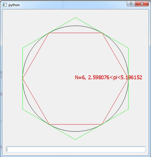 Here's an overview of the program: you can inscribe a hexagon and also circumscribe a hexagon around a circle. If the circle has a radius of 2, then the perimeter of the hexagons provide lower and upper bounds on Pi, respectively: